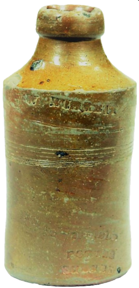 BURRIDGE T FIELD POTTER SYDNEY CLAY POTTERY STONEWARE EARTHENWARE GINGER BEER BOTTLE