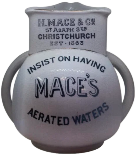 H MACE & CO ST ASAPH STR CHRISTCHURCH EST 1863 INSIST ON HAVING MACES AERATED WATERS JUG PITCHER